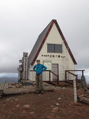 | 9:40 氷ノ山の山頂に着いた。2人ほどいた。すごく寒い。 去年もこんな感じの天気だった。しかも職場から緊急電話が入ったのを思い出した。 ふもとで男性がおっしゃっていた「雪だったという大山」の方は雲が厚くて明瞭には 見えない。写真を撮ってすぐに小屋に入って上着を着た。 APRS用とD-STAR用に無線機を2台持って来たのにアンテナを忘れる始末。 「これじゃ、ただのボッカだ・・。」APRSを発信できないので、スマホメールで家に いるMICKEYや息子達に登頂の無事を知らせた。 長男からはすかさず「ホンマに氷ノ山が好きやなぁ」と返信がきた。 息子達が小学生の頃から何度登ったことだろうか。メールを見てにやりと笑ってしまった。 10:00 下山開始。「氷山命水」の方には向かわずに、三ノ丸方面へと向かう。 東屋の近くのキャラボクも久々に見に行った。 |