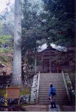 県下一の巨木がある。そこを右に奥の院への道をとる。登り始めると