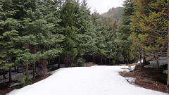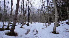 | 急な樹林帯を下る | 西斜面は雪が溶けていた |