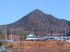 | 羽束山のすぐ西隣の「さんしよう山」 | 右のずんぐりした山が「羽束山」 |