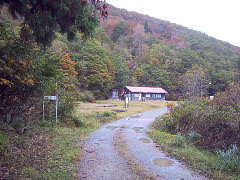 | 6:35 「では、いってきま〜す(^^)」出発。地蔵峠で仮入林届けを記入。 30分前に1人の男性が上谷から杉尾坂経由でシンコボへ向かっているようだ。 今日は枕谷沿いの近道で長治谷へ行かずに、中山回りで、途中の「扇谷見本林」 や「中山樹木園」「上谷量水堰」の場所をMICKEYにも案内しつつ長治谷作業所の 所に行く。紅葉が始まりつつある。 |